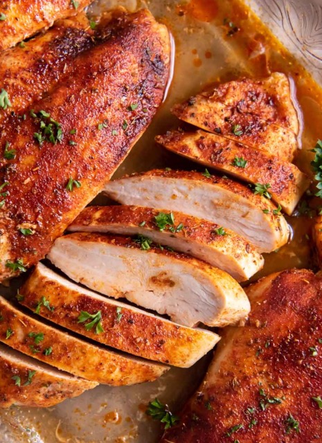 Mix all the spices, sprinkle over chicken breasts (be sure to get both sides!) then put in the Airfyer at 400 for 25 minutes (or until it is cooked through at 165 F). Once it cooks, let it rest 10 minutes before dicing – RESIST the temptation to just take a little piece- the resting keeps it from getting dry! Enjoy!